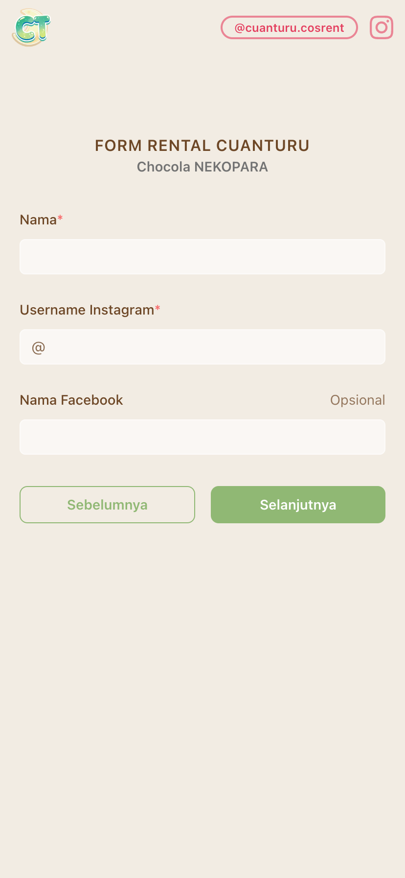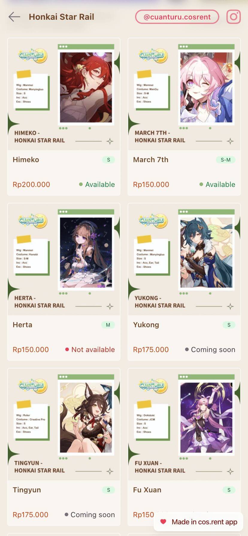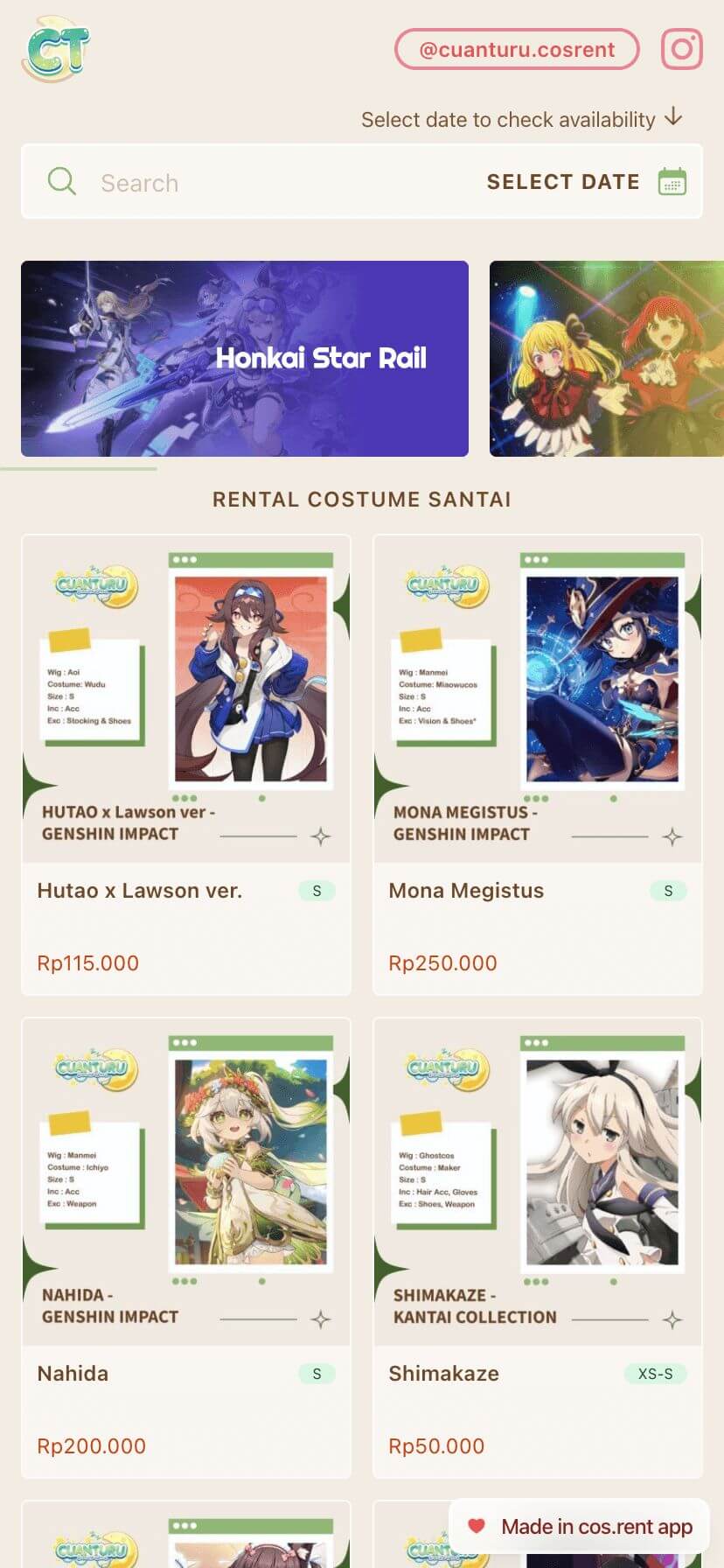 Dapatkan website untuk pamerin koleksi kostum keren kamu beserta availability-nya, seperti cuanturu.com